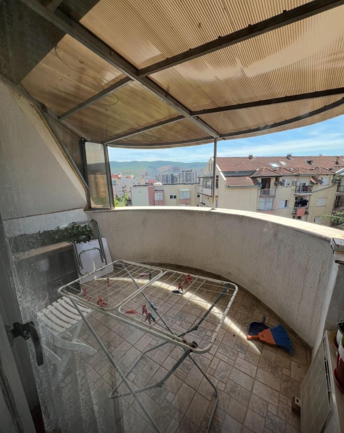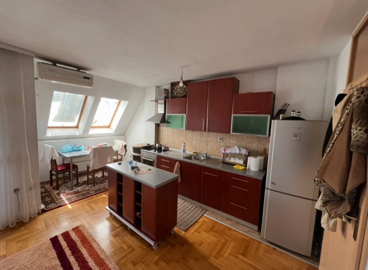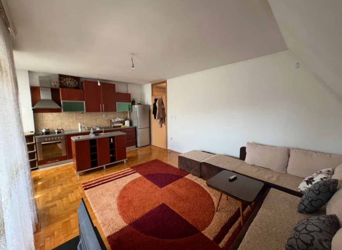 Ndodhet në katin e 5-të pa ashensorë dhe Posedon sipërfaqe prej 62m2.