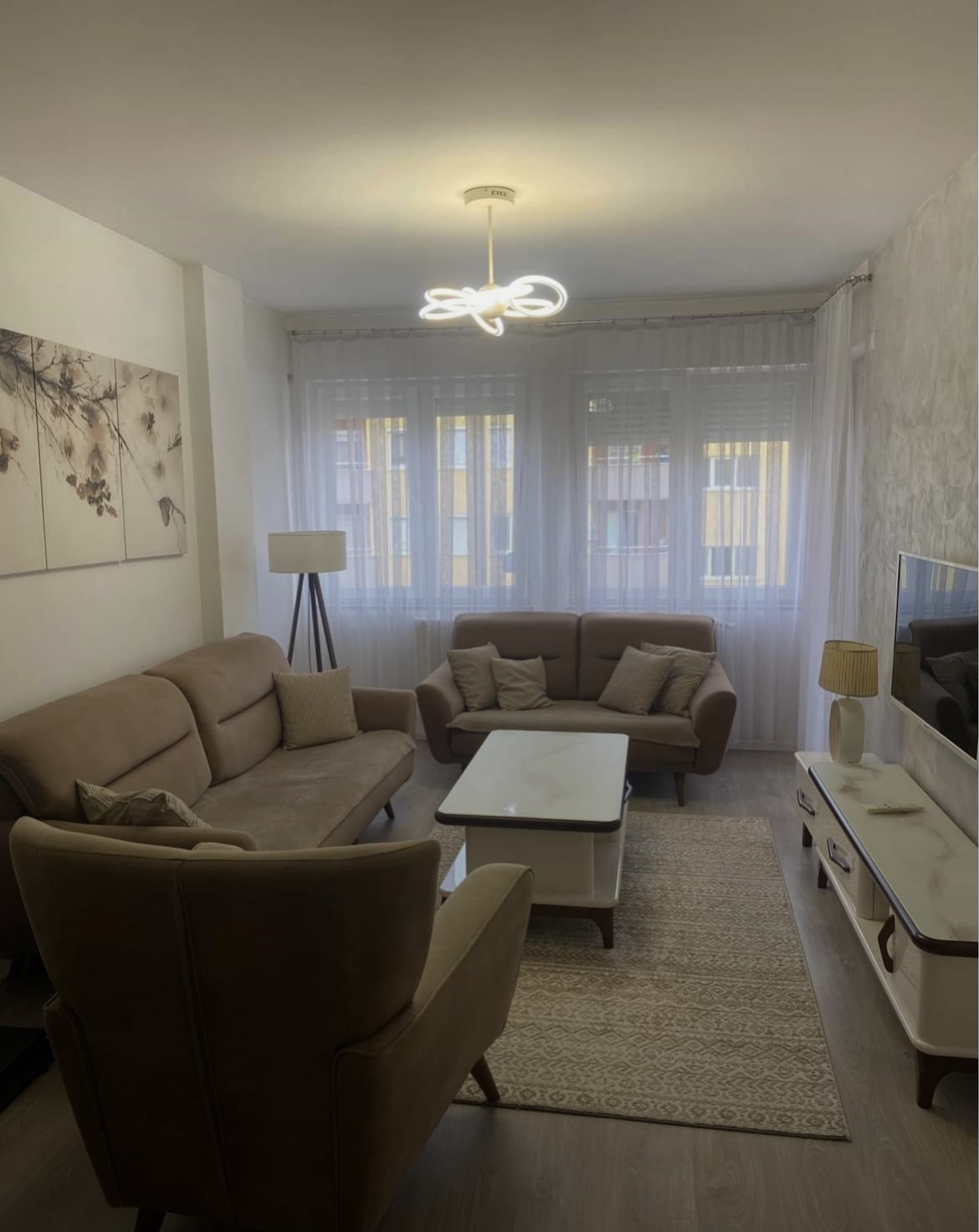 Përbëhet nga Sallon me kuzhinë, 2 dhoma gjumi, korridor, banjo dhe ballkon.