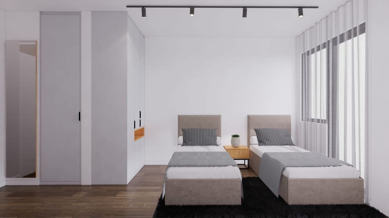 Përbëhet nga Sallon me kuzhinë, 2 dhoma gjumi, korridor, 2 banjo, depo, ballkon dhe garazh.