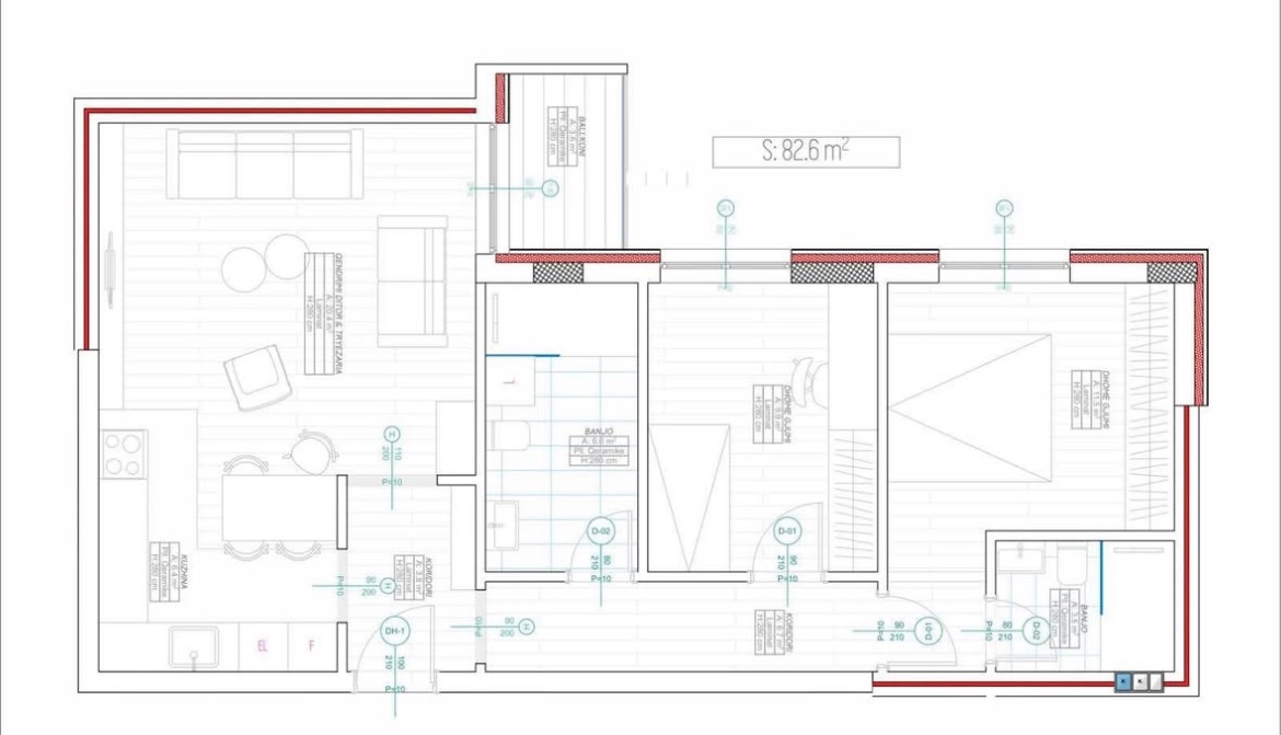 Sipërfaqja e pronës: 83 m2