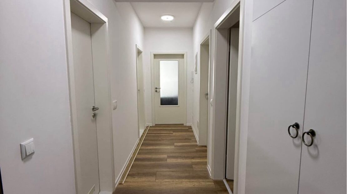 Përbëhet nga Sallon me kuzhinë, 2 dhoma gjumi, korridor, 2 banjo dhe ballkon.